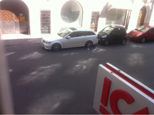 En eldfängd best parkerad framför en beskedligare fyrhjuling, båda uppmärksamhetsretande på sina egna sätt...